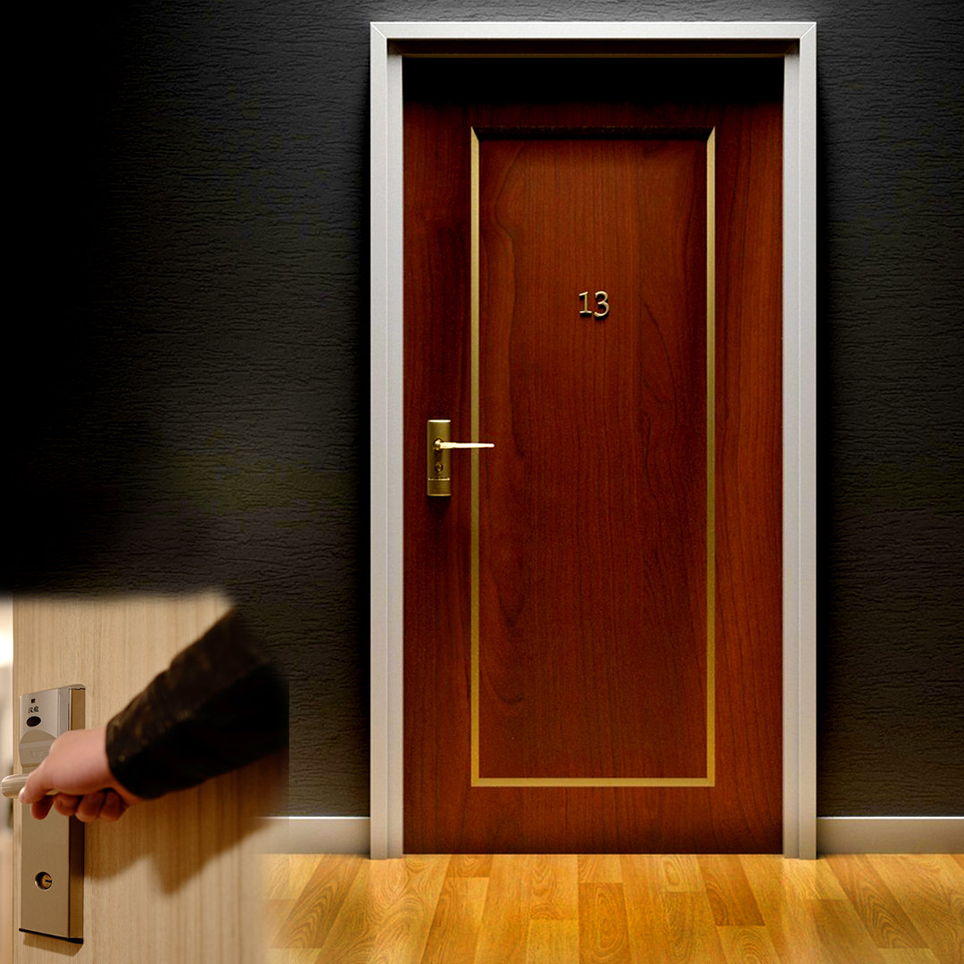A flush door with a stave core will consist of wooden slats stacked upon one another. If the core is hollow (i.e. where perhaps two sections of plywood have been attached to each side of a frame) some support may be built into the frame (such as a lattice or honeycomb support system made of corrugated cardboard).